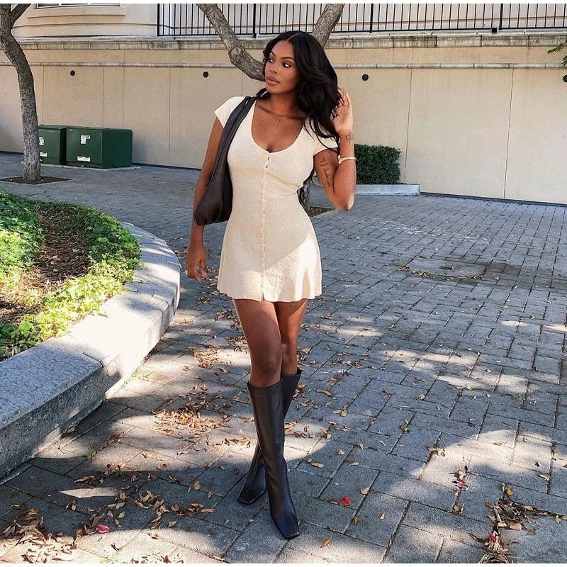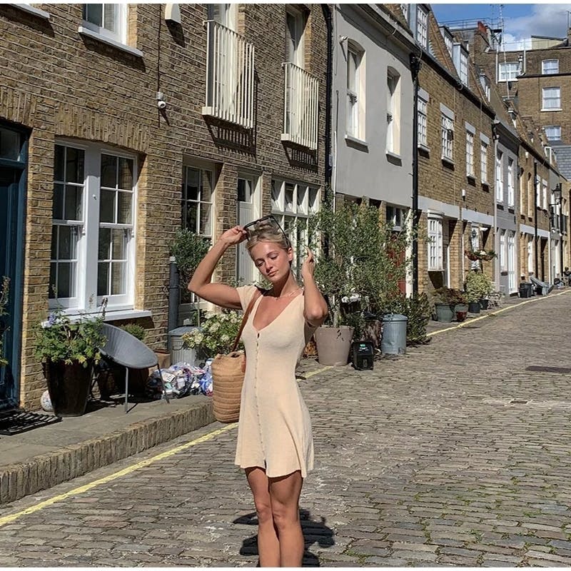 Sienna Knit Button-Down Mini Dress – Neutral Beige